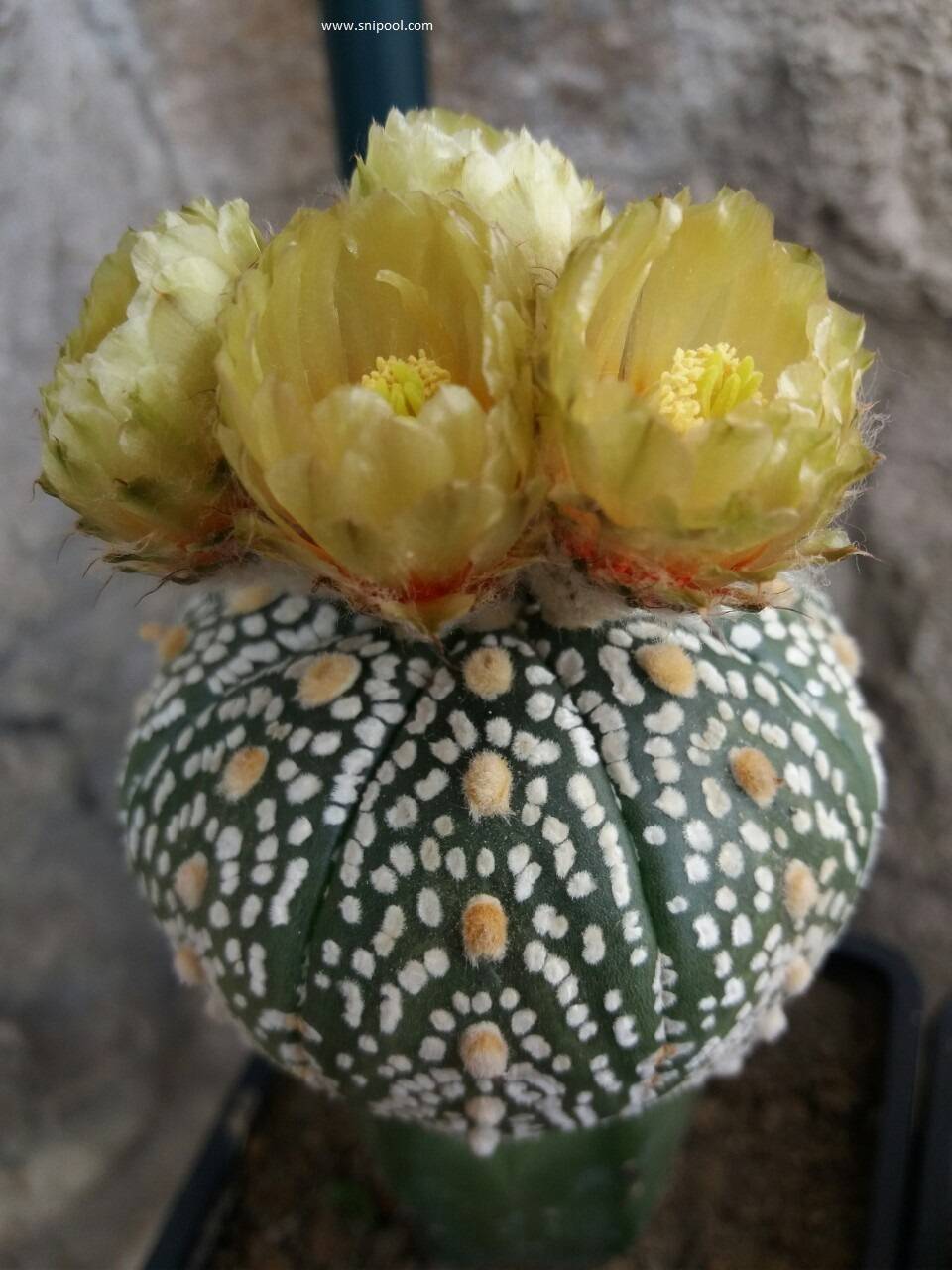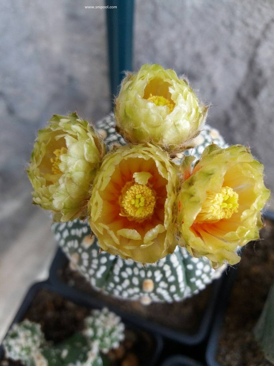 Astrophytum asterias super kabuto или на кратко астрофитум е топчест кактус без бодли произхождащ от Мексико и Тексас. През лятото в домашни условия гледани правилно тези кактуси цъфтят изклюшително красиво, а в случая цели четири цвята на веднъж.