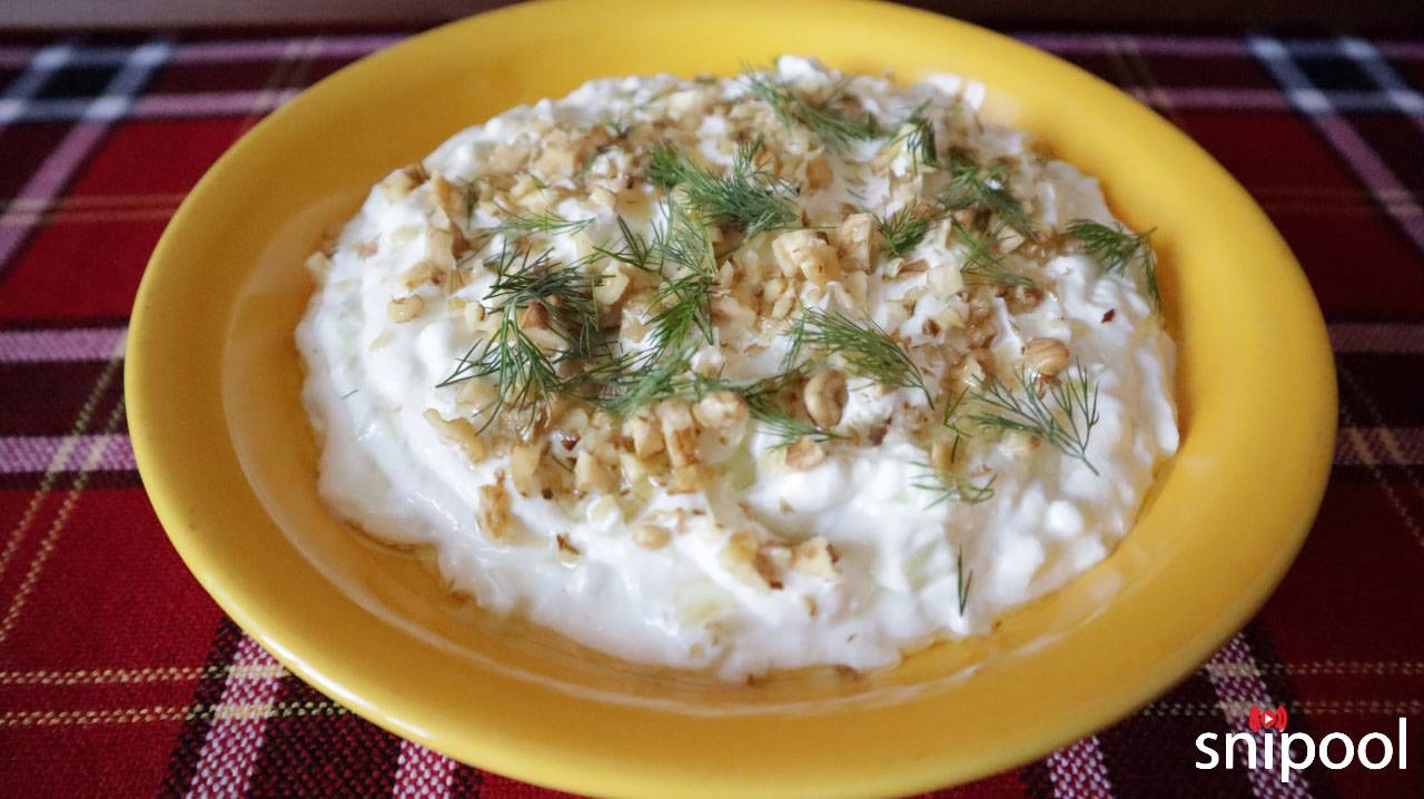 - Презентираме като оформим топки с лъжица за сладолед или в дълбока чиния. Добавяме отгоре струйка зехтин, натрошени (смлени) орехи и накъсан копър.