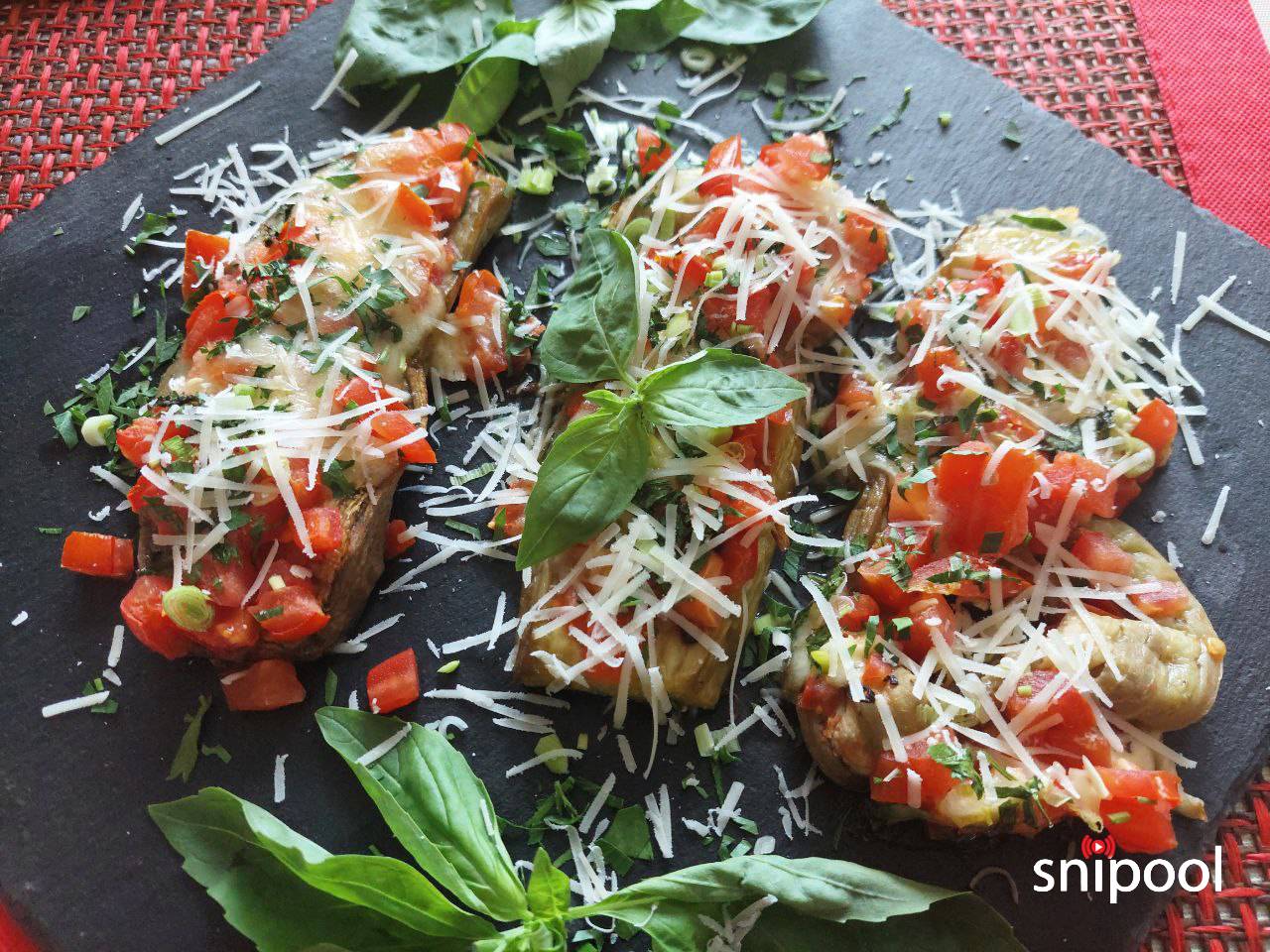 Патладжани на фурна с домати, моцарела, подправки и пармезан