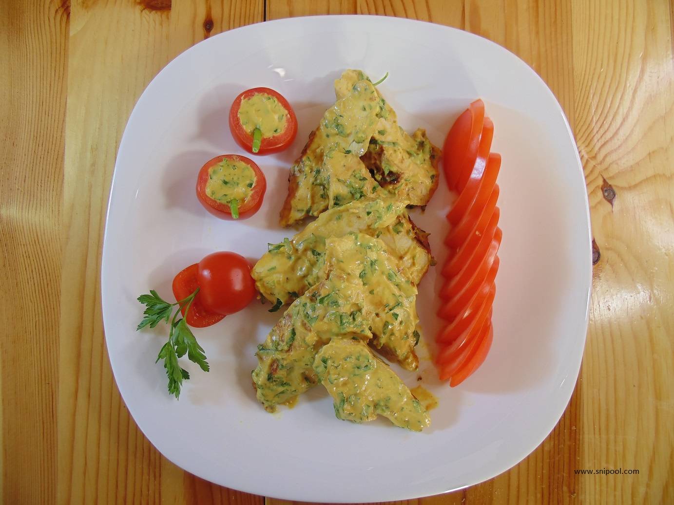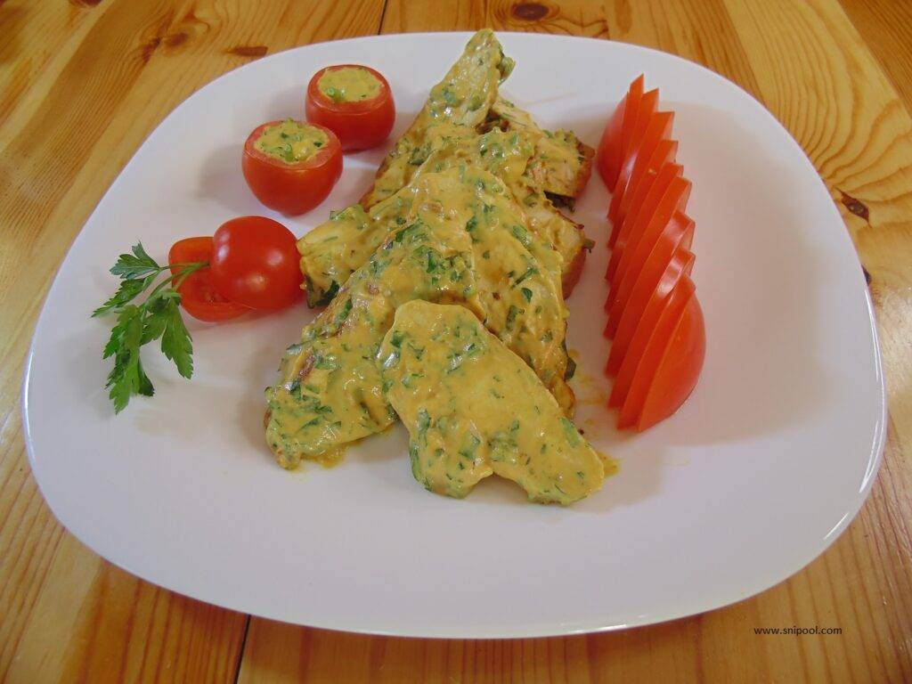 - Сервираме с нарязан домат (реден) и чери доматчета за украса.