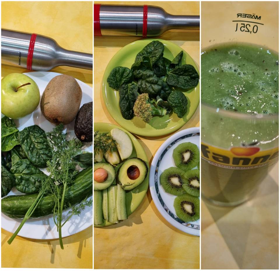 В това смути се съдържат всички необходими микронутриенти за деня. Спомага за пречистване на кръвта, черния дроб и цялостно на организма от вредните токсини. Моите два любими плода от тази рецепта са киви и авокадо. Може би повечето от вас не знаят, но кивито съдържа повече витамин C дори от портокала, един плод осигурява 273% от необходимия дневен прием. Също така този плод подобрява качеството на сън и заспиването. Що се отнася до авокадото- това е една суперхрана заради високото съдържание на полезни мазнини и фибри.